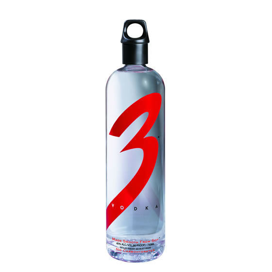 “3 Vodka is the result of a remarkable journey: a quest for character, perfection, and natural balance missing from other vodkas. Unmistakably smooth, 3 has a character like no vodka ever created. 3 Vodka is distilled its own way, using a proprietary and time-intensive method, with two separate distilleries employed to protect the secrets of the vodka’s complex origins. 3 Vodka marks the first time in history that soy has been distilled. Made from a delicate combination of soy isolates, the purest elements of the soy plant, and select grains, 3 Vodka gains its signature smoothness from the natural soy itself. 3 Vodka is the ultimate spirit. Awarded the first perfect vodka taste score of 100 points ever recorded, 3 Vodka is the world’s best-reviewed vodka by spirit critics worldwide. While 3 Vodka is unsurpassed as a vodka lover’s vodka, its packaging is also without peer as a reflection of the care taken to craft the spirit within. 3 Vodka has been awarded first place in the Mobius Awards, considered the international packaging industry’s most prestigious prize; 3 Vodka was recognized for excellence in the design of both its box and its trademark bottle. 3 Vodka has also been awarded the Shine International Packaging Award and was voted Best Package of the Year by Beverage Industry magazine.” -Producer