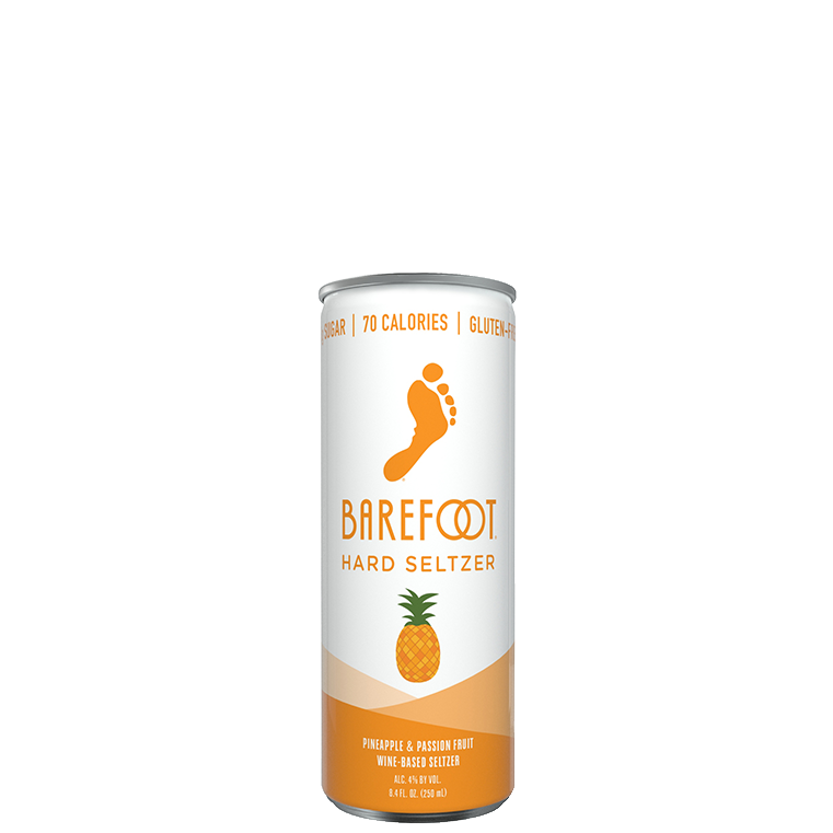 Barefoot Hard Seltzers are a vibrant and refreshing blend of sparkling water, grape wine and natural flavors. Barefoot Hard Seltzer Pineapple & Passionfruit is delicious and crisp with yummy Pineapple flavor and hints of Passionfruit.