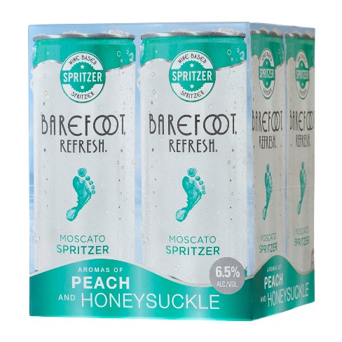 Every bottle of Barefoot Moscato Spritzer wine is infused with all the refreshing, fruity goodness of juicy peaches & oh-so-sweet tangerines. Pop open a bottle & cool down with charbroiled bratwurst sandwiches, bacon-wrapped jalapeno poppers, or spicy chicken skewers.