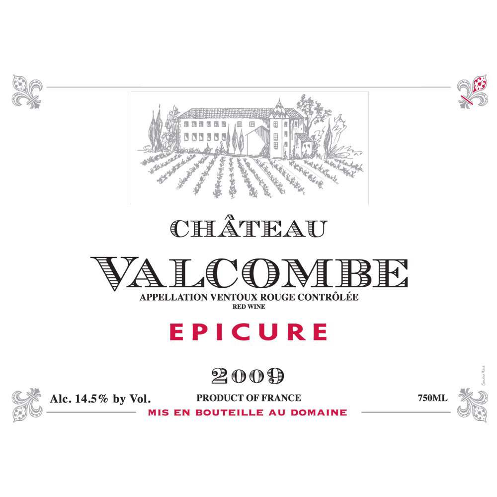 Chateau Valcombe Ventoux Rouge L’Epicure: The classic red wine of Valcombe is a blend of Grenache Noir (60%), Carignan (20%), Syrah (10%) and Cinsault (10%). However, these are general guidelines and the blend of each vintage’s ultimate cuvée can vary to a large or small degree depending on that year’s growing conditions. The grapes are destemmed, then are fermented in temperature-controlled cement tanks. After the initial racking the wine ages in a combination of cement tanks and larger barrels (foudres and demi-muids). Organic