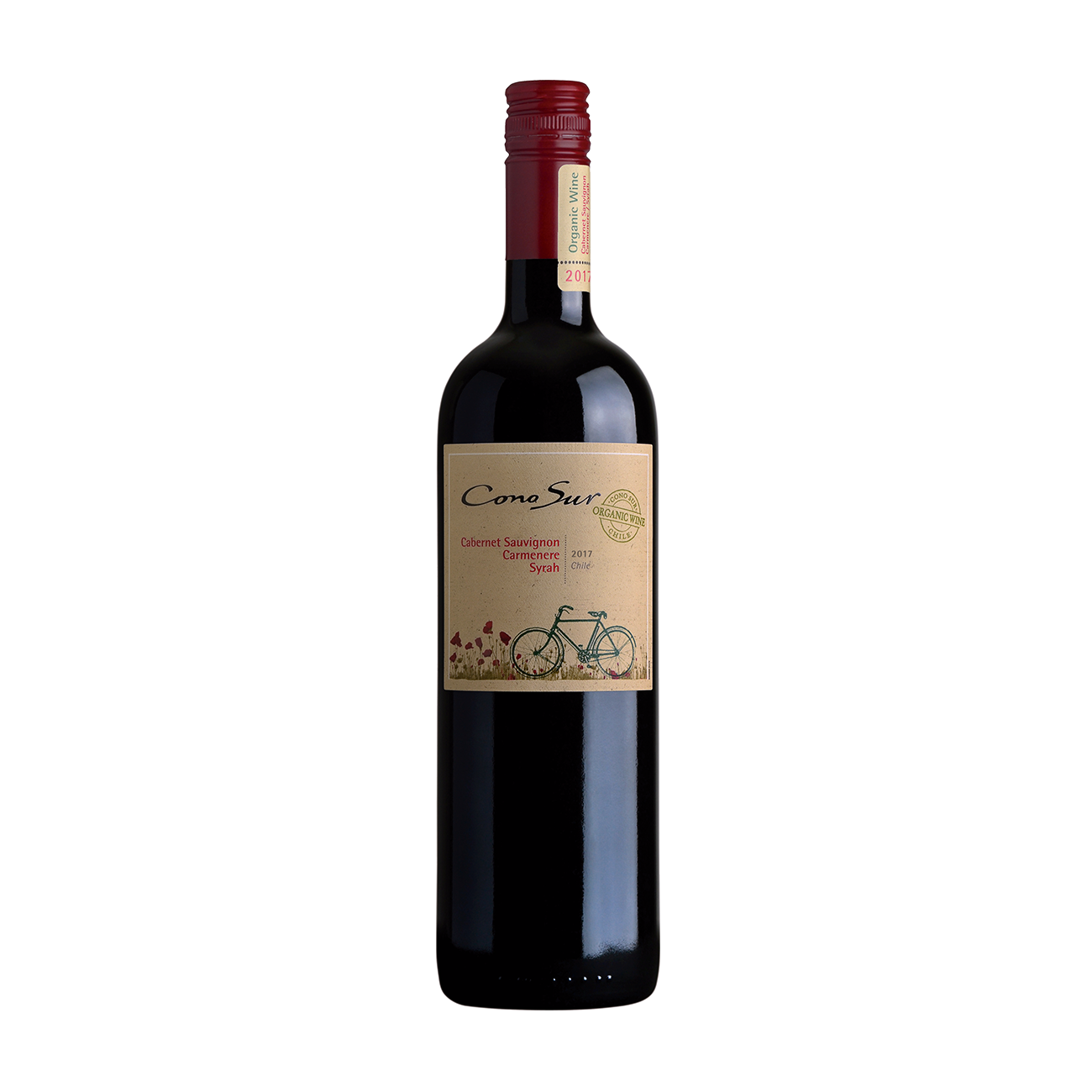 This Cabernet Sauvignon, Carmenere, Syrah blend, made from organically grown grapes certified by the BCS Öeko Garantie GmbH, bears the spirit of our estate workers, pedaling their way to our vineyards each day. From the Colchagua Valley, this reddish-purple wine offers an expressive and very fruity nose, with notes of plums, berries and nutty hints. In mouth, this juicy blend has a delightful concentration of red and black fruits, which are in complete harmony with soft tannins. A wine of integrated character, that culminates in a chocolate finish with underlying woody and toasty flavors.