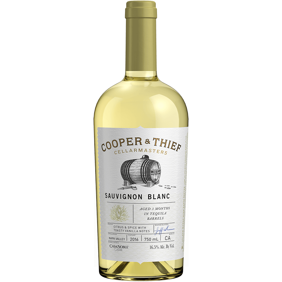 Cooper & Thief Sauvignon Blanc is a rich wine full of aromatic fruit characters, with classic citrus and spice notes reminiscent of a fine blue agave tequila, giving way to toasty vanilla flavors from the barrels. Aging for three months in Casa Noble añejo tequila barrels creates an unusual richness in the structure, balanced with refreshing acidity and finishing with a subtle heat.