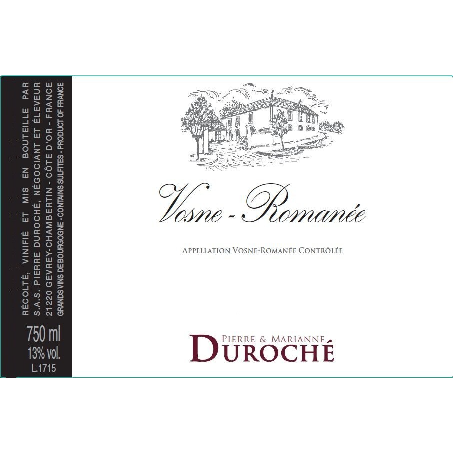 | Vineyard | Sourced from the climat of Chaladins located between Vosne and Clos de Vougeot. Vineyard owned by the family of Marianne Duroche (Pierre's wife). |
