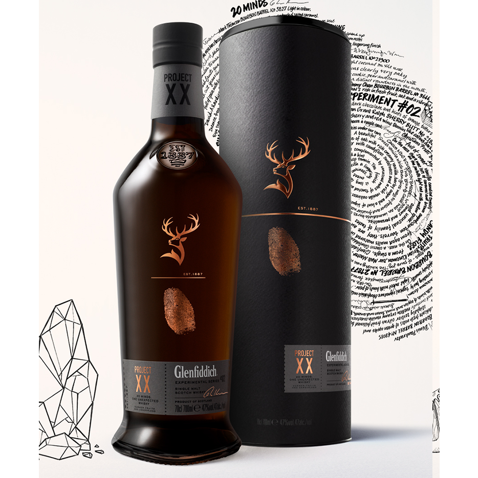 With its deep golden hue, Project XX embodies the warm, fruity character of a classic Glenfiddich whisky with hints of apple blossom, summer fruits and ripe pear. But its multiple personalities are revealed with hints of sweet candyfloss, cinnamon spice, almonds and rich port tannins with the odd whisper of liquorice. Deep and mellow, the finish is long lasting with a lingering sweet oakiness.