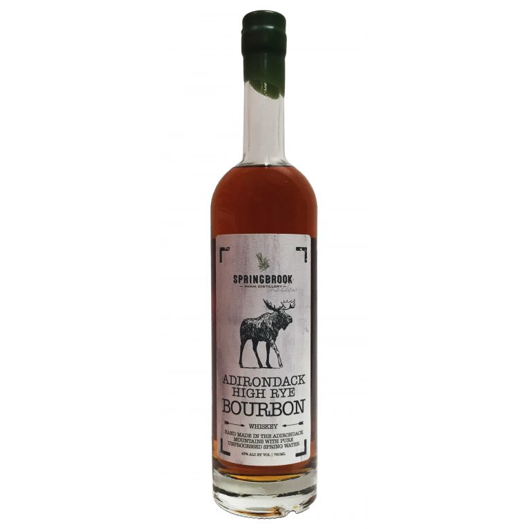 Springbrook’s Adirondack High Rye Bourbon is perfect for the discerning whiskey drinker or cocktail enthusiast. Our local corn, rye, malted barley and heavy char oak barrels offer the perfectly balanced combination of bold and sweet. This complex bourbon is flawless in a Manhattan, Old Fashioned or straight up. On the nose, you get heavy caramel and hints of vanilla. The body gives flavors of oak and toffee. This is all underscored by the complex and spicy flavor of rye. Last but not least, the finish is long and rich with a balance between dry and sweet. Adirondack High Rye Bourbon won a Silver Medal at the New York State International Spirits Competition.
